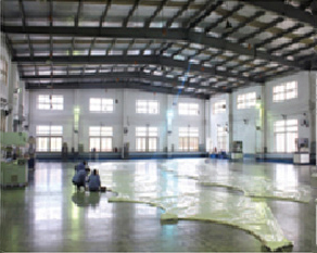 广州中膜智造公司拥有2000平方米现代化专业膜材加工厂,大型膜材焊接设备6台,可提供400,000平方米/年的膜加工生产能力。车间还备有大型PTFE及ETFE膜结构加工制作设备和检测检验设备,所有原始膜材在加工前均经过严格检测,可保证加工完成的膜成品没有色差、色斑、涂层缺陷及断丝等质量问题。